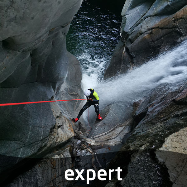Fortgeschrittene und Experten im Canyoning kommen bei unseren Outdoor-Erlebnissen in der Schweiz voll und ganz auf ihre Kosten. Die Tagestouren führen uns in die schönsten und schwierigsten Schluchten, die das Tessin zu bieten hat, sei es im Maggiatal, im Rivieratal, im Bleniotal oder im Verzascatal. Auf allen Touren kannst Du Deine Vorkenntnisse perfektionieren und Deine Grenzen an besonders kantigen oder steilen Schluchten erweitern. Und weil wir Canyonisten die Natur und das Outdoor-Erlebnis besonders lieben, werden Dich auch das Panorama und die wilde Abgeschiedenheit beim Canyoning in der Schweiz beeindrucken.
