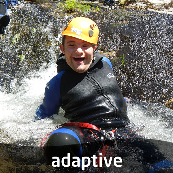 • das „Canyoning adaptive“, das sich speziell an Menschen mit Behinderung oder Beeinträchtigungen wendet. Einzige Voraussetzung ist: Du musst alle Fortbewegungsarten aus eigener Kraft (in Deinem Tempo) bewältigen, also laufen, klettern, schwimmen können. Canyoning adaptive bieten wir in der Schweiz auf den Niveaustufen Basics, Pro oder Expert an.