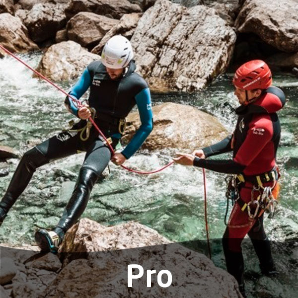 Il canyoning per professionisti e ripetitori è caratterizzato da alte calate e cascate, passaggi d'acqua impegnativi e gole scavate nel granito ticinese. Salti e scivoli sono opzionali anche per i tour in Level expert.